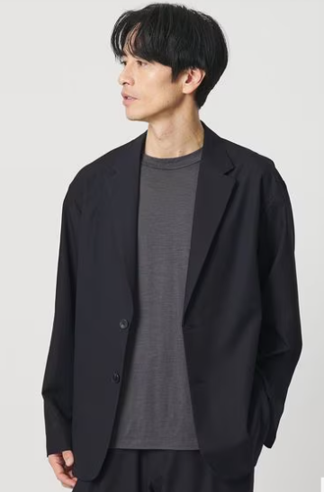 ジャケットという基本はフォーマルなアイテムですが、各部分の寸法を大きく採ることでリラックスな雰囲気のあるジャケットになっています。