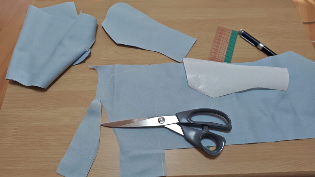 タリアトーレのサロモンをよくよく観察した結果、最初の頃に作っていた型紙を少し変更して少し幅を太めにして襟先も丸みのある形に修正しました。