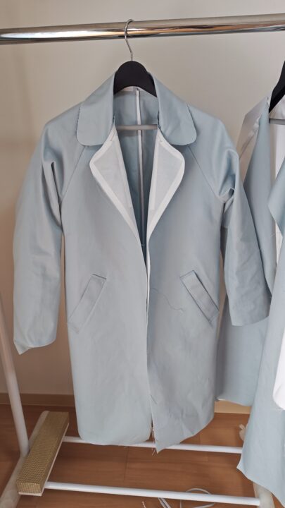 写真が少ないので簡単にできたように思えるかもしれませんが、上襟とラペルの付け根部分を上手く縫い合わせられなくて引きつってしまい縫い目を一度解いてやり直したりしていて、実際は結構苦労しているんです。